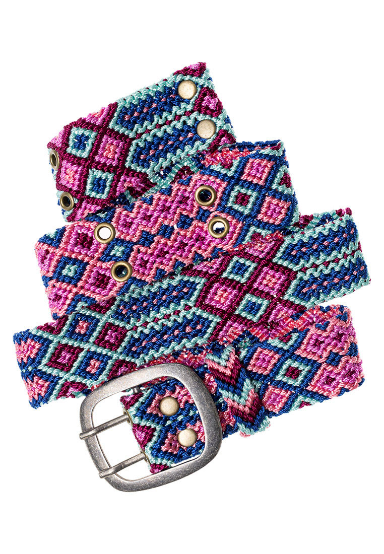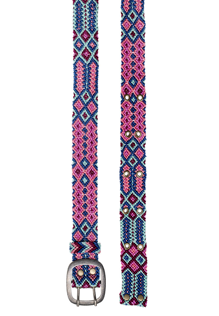 Die geknoteten Gürtel kommen aus Peru und werden in der traditionellen Knotentechnik von Hand produziert. Einzelne Farbfäden, bis zu 12 m lang, werden akribisch zu wunderschönen geometrischen Mustern geknotet. Wir arbeiten mit Frauengruppen aus den indigenen Völkern in den Anden zusammen, die einen verlässlichen und fairen Lohn erhalten, mit dem sie einen Beitrag zum Familienunterhalt leisten können.