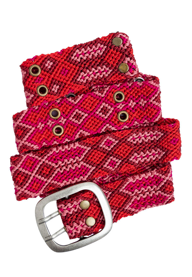Die geknoteten Gürtel kommen aus Peru und werden in der traditionellen Knotentechnik von Hand produziert. Einzelne Farbfäden, bis zu 12 m lang, werden akribisch zu wunderschönen geometrischen Mustern geknotet. Wir arbeiten mit Frauengruppen aus den indigenen Völkern in den Anden zusammen, die einen verlässlichen und fairen Lohn erhalten, mit dem sie einen Beitrag zum Familienunterhalt leisten können.