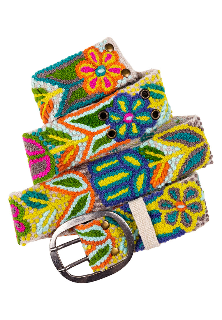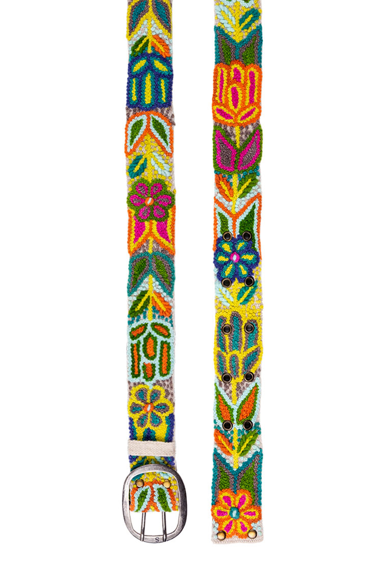 Hier ist der Name Programm, die satten Farben des Dschungels in satten Grün- und bunten Blütentönen, eine besonders coole Farbkombination, auf dem von Hand bestickten Gürtel, der zu so vielen Outfits passt.