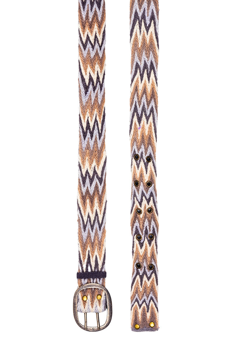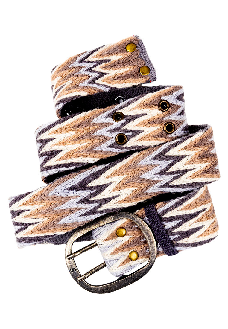 Das markante Zackenmuster in klassischen Grau-, Taupe- und Rauchtönen machen diesen von Hand bestickten Gürtel zu einem zauberhaften Accessoire, das Blicke auf sich zieht.