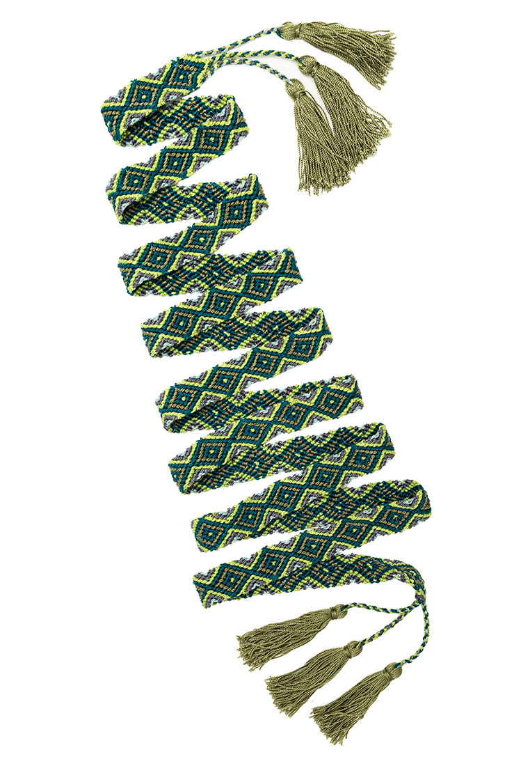 Die geknoteten Gürtel kommen aus Peru und werden in der traditionellen Knotentechnik von Hand produziert. Einzelne Farbfäden, bis zu 12 m lang, werden akribisch zu wunderschönen geometrischen Mustern geknotet. Wir arbeiten mit Frauengruppen aus den indigenen Völkern in den Anden zusammen, die einen verlässlichen und fairen Lohn erhalten, mit dem sie einen Beitrag zum Familienunterhalt leisten können.