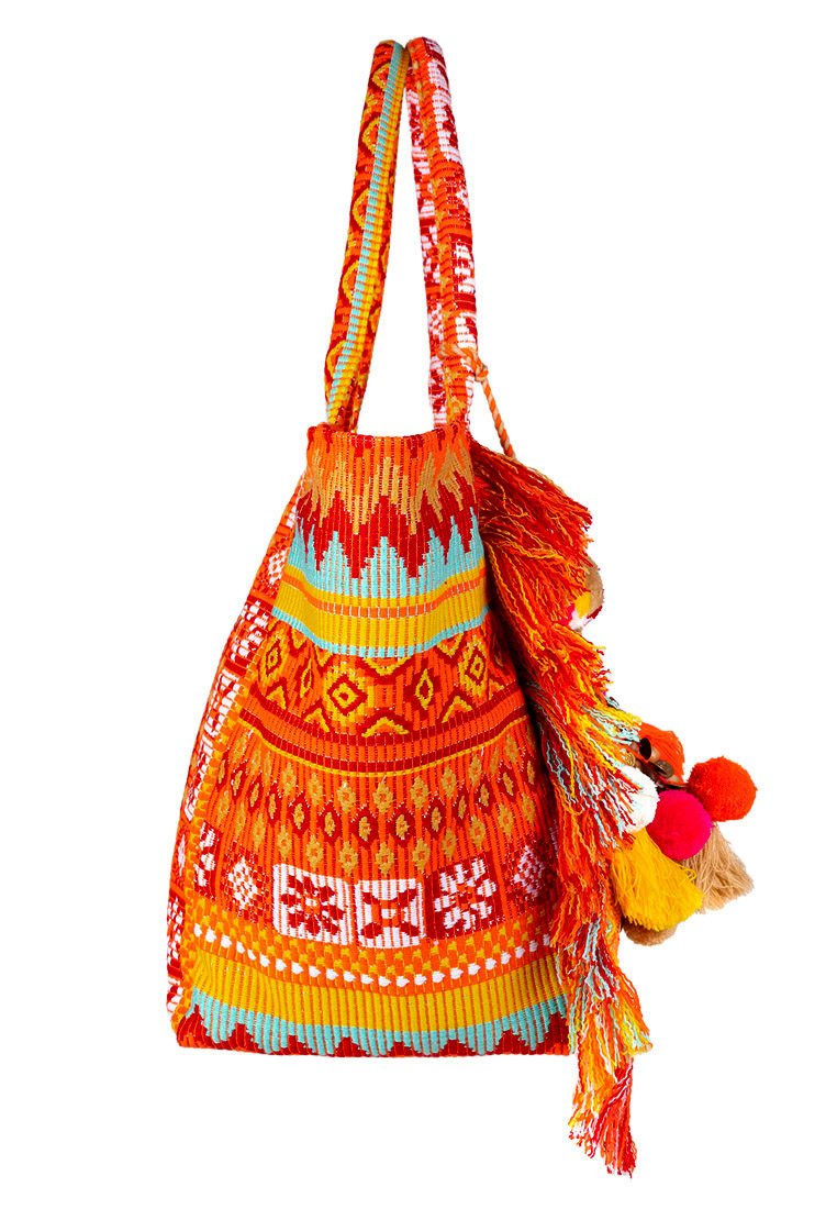 Wow, diese Tasche knallt im intensiven Orange, pink, gelb und türkis ganz schön rein. Die Tasche mit dem aufwändigen Nietenbesatz ist eine wunderschöne Begleiterin für’s Büro den Einkauf oder den Strand.