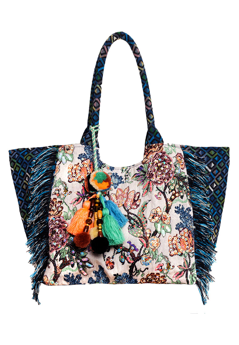 Wie ein kleines Kunstwerk wirkt das Baum-mit-Blüten-Motiv, vor allem weil es zusätzlich mit zart schimmernden Pailletten besetzt ist, was der Tasche einen wunderschönen Glanz verleiht. Ein toller Begleiter zum Einkaufen, fürs Büro oder den Strand.
