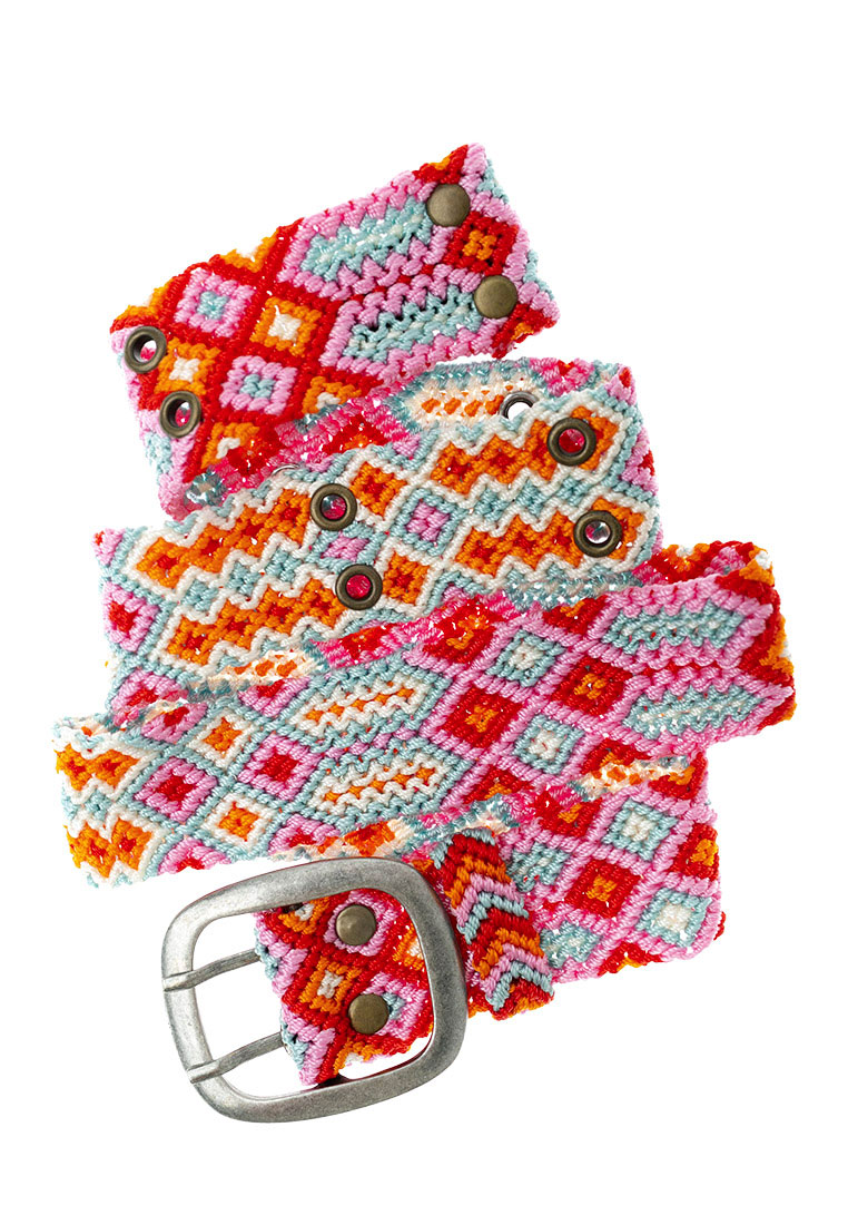 Die geknoteten Gürtel kommen aus Peru und werden in der traditionellen Knotentechnik von Hand produziert. Einzelne Farbfäden, bis zu 12 m lang, werden akribisch zu wunderschönen geometrischen Mustern geknotet. Wir arbeiten mit Frauengruppen aus den indigenen Völkern in den Anden zusammen, die einen verlässlichen und fairen Lohn erhalten, mit dem sie einen Beitrag zum Familienunterhalt leisten können.