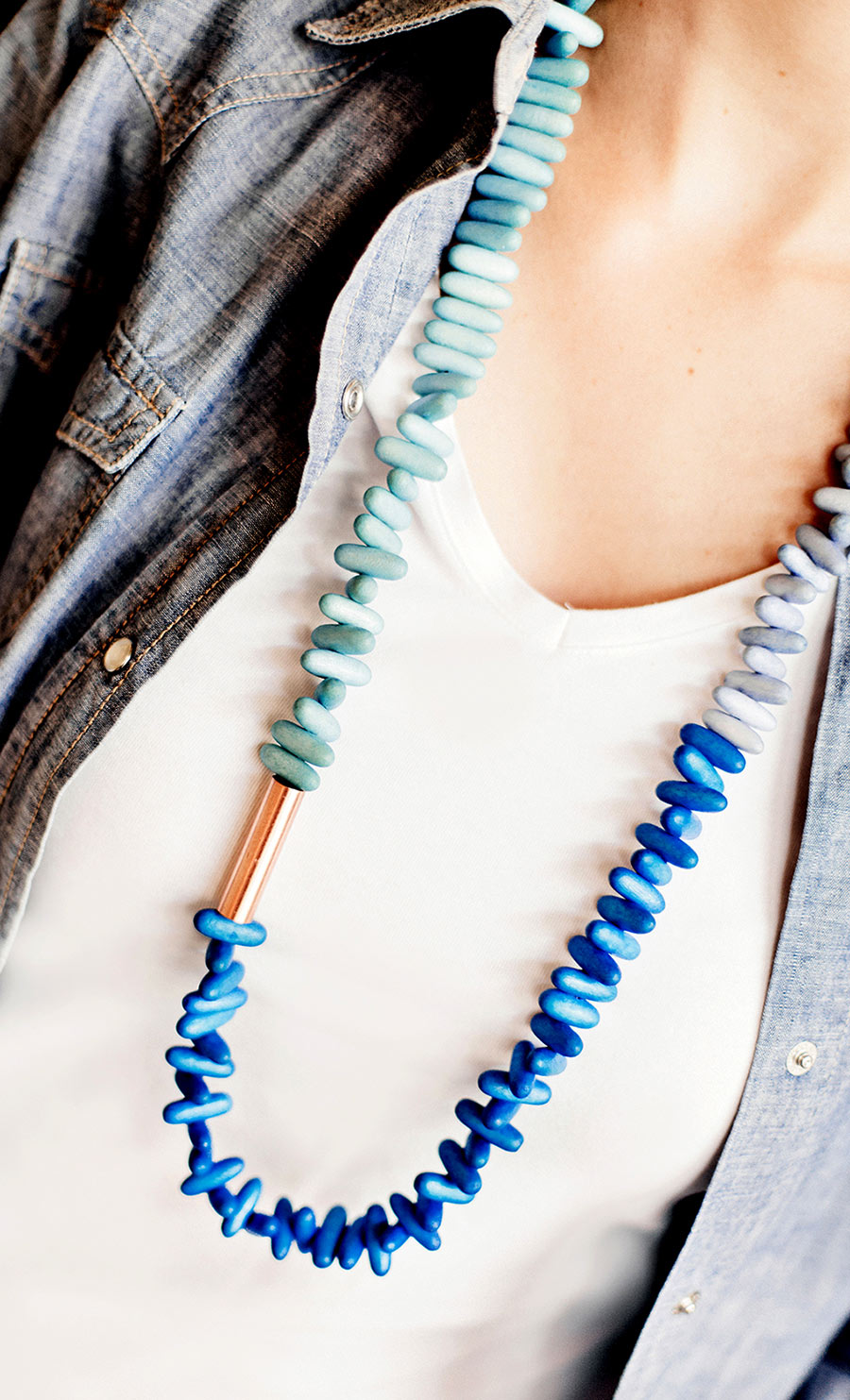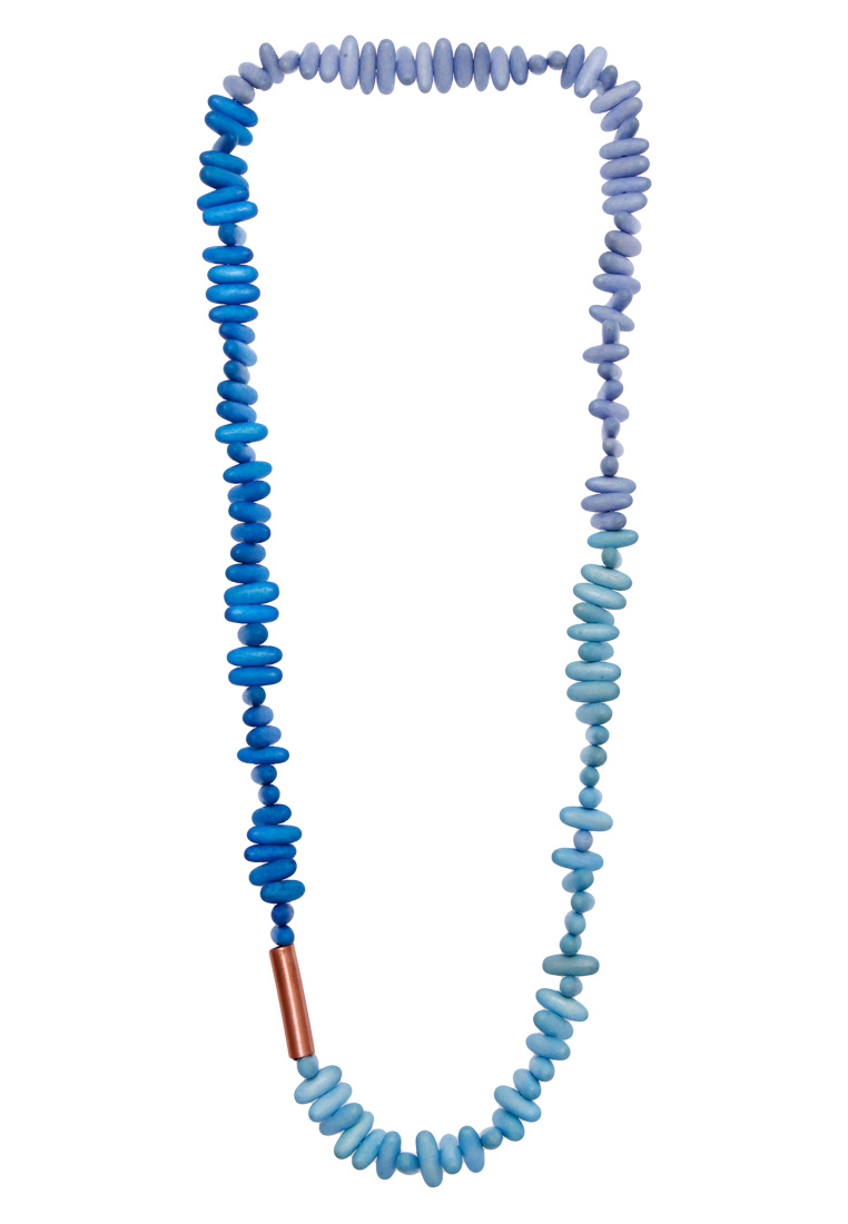 Die Halsketten sind aus Holz gefertigt. Das Holz ist ein Material, das aus Cebu, in den Philippinen einheimisch ist. Dieses Holz lässt sich besonders gut einfärben. Die Handwerkergruppe Fame Foundation verwendet ein Holz, das ständig nachgepflanzt wird. Sie arbeiten eng mit dem Ministerium für Umwelt und natürliche Rohstoffe vor Ort zusammen, um diese Holzart im öffentlichen Waldland zu kultivieren und zu pflanzen, die den Bauerngemeinschaften den Lebensunterhalt sichert. Die Gruppe braucht aber für ihren Schmuck nur sehr kleine Mengen und ernten das Holz wenn es “reif” ist. Der Zyklus des Wiederanbaus dieser Bäume wird fortgesetzt, der die Nachhaltigkeit des Materials gewährleistet. Das Holz wird dann mit einfachen Fräsmaschinen verarbeitet, um verschiedene Perlen zu produzieren, die zu Modeschmuck werden. Die Gruppe beschäftigt Hausfrauen, die wegen ihrer Hausarbeit keinen Vollzeitjob nachgehen können, aber so zusätzliches Familieneinkommen verdienen, wenn sie zu Hause die Ketten und anderem Schmuck produzieren.