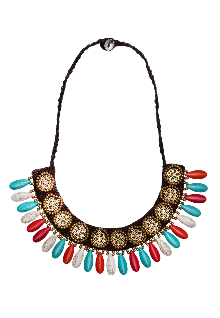 Eine fröhliche Kette mit Ethno-Touch! Die Kette Sandra wird in Thailand von Frauen in Heimarbeit hergestellt. Die Frauen können auf diese Weise die Versorgung ihrer Kinder und einen regelmässigen, fairen Verdienst kombinieren. Wir arbeiten mit all unseren Handwerkern partnerschaftlich und fair zusammen. Smitten - Handmade Ethnic Accessories