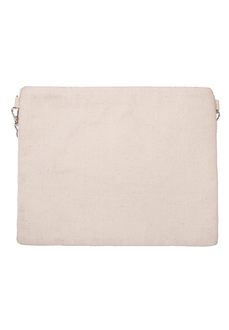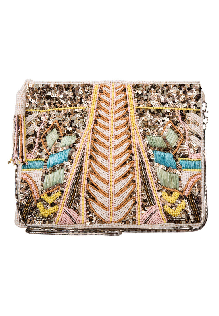- Glasperlen, Pailletten und Bastgarn von Hand aufgestickt