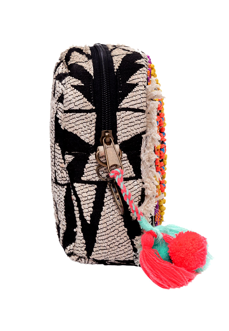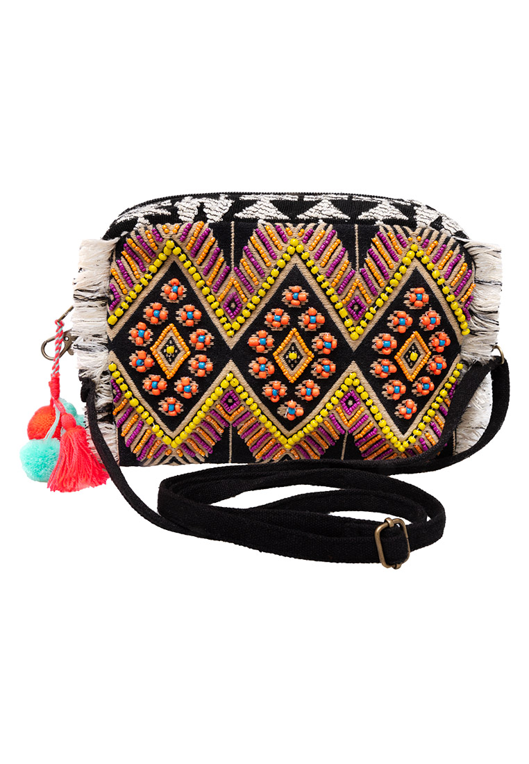 - Materialmix aus Leinen und Baumwolle, Kunstfaser mit Perlen und Pailletten- Innenfutter: Baumwolle- Maße: 22 x 15 x 5 cm (B x H x T) - Schulterriemenlänge: verstellbar von 27 cm -  65 cm  - Schulterriemen ist abnehmbar und Tasche kann auch als Clutch verwendet werden   - mit einem Karabinerhaken an der Seite kann man die kleine Tasche an einem Ring in der großen Neela Tasche einhaken und sie somit diebstahlsicher in der großen Tasche machen                      - Verschlussart: Reissverschluss- Faire Handarbeit aus Indien
