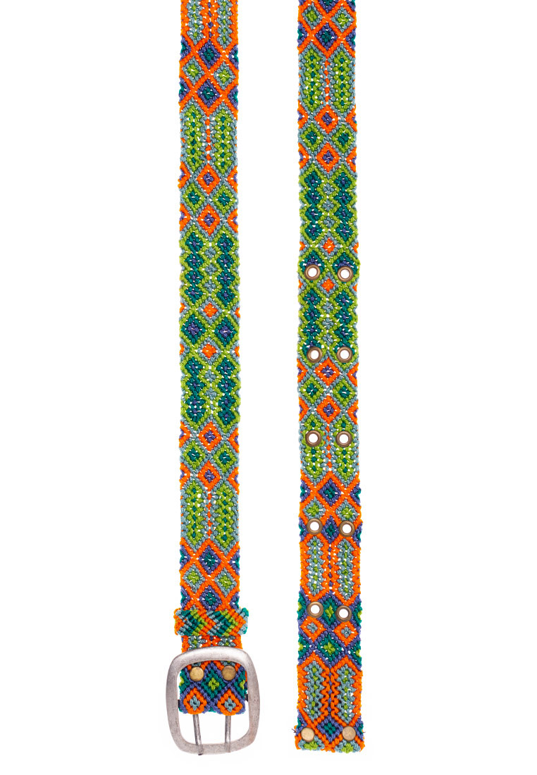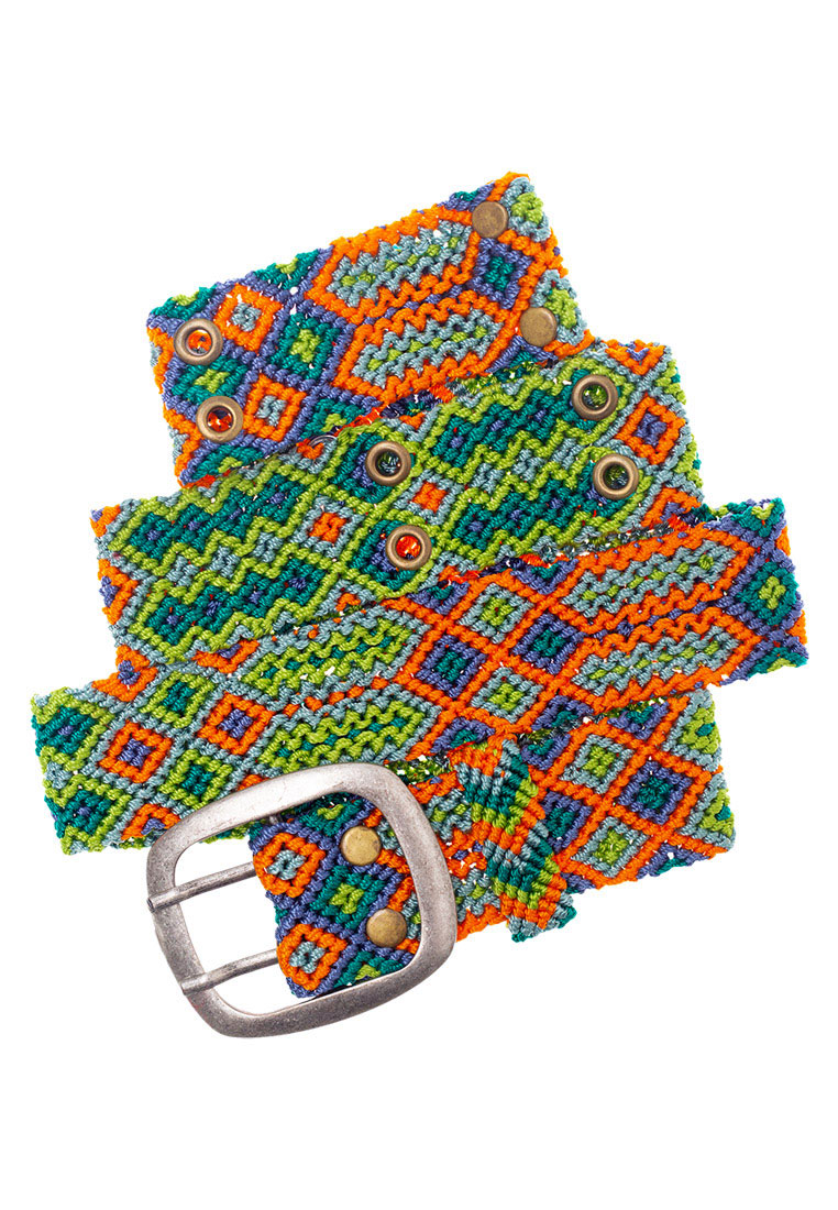 Die geknoteten Gürtel kommen aus Peru und werden in der traditionellen Knotentechnik von Hand produziert. Einzelne Farbfäden, bis zu 12 m lang, werden akribisch zu wunderschönen geometrischen Mustern geknotet. Wir arbeiten mit Frauengruppen aus den indigenen Völkern in den Anden zusammen, die einen verlässlichen und fairen Lohn erhalten, mit dem sie einen Beitrag zum Familienunterhalt leisten können.