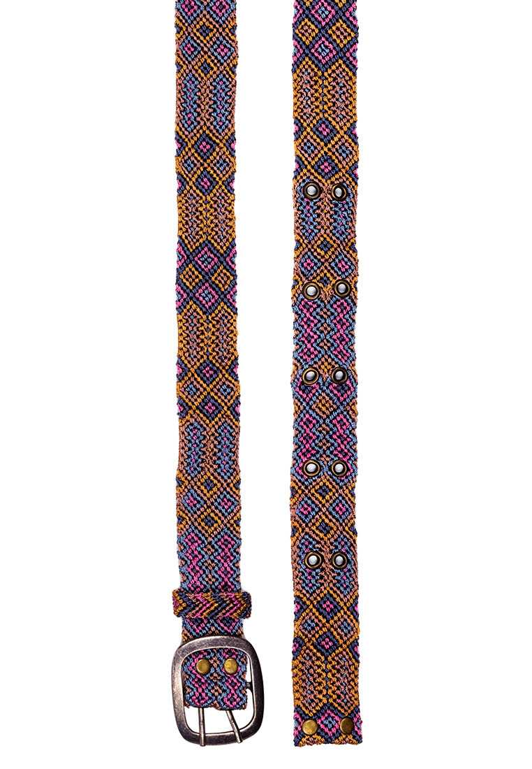 Die geknoteten Gürtel kommen aus Peru und werden in der traditionellen Knotentechnik von Hand produziert. Einzelne Farbfäden, bis zu 12 m lang, werden akribisch zu wunderschönen geometrischen Mustern geknotet. Wir arbeiten mit Frauengruppen aus den indigenen Völkern in den Anden zusammen, die einen verlässlichen und fairen Lohn erhalten, mit dem sie einen Beitrag zum Familienunterhalt leisten können.