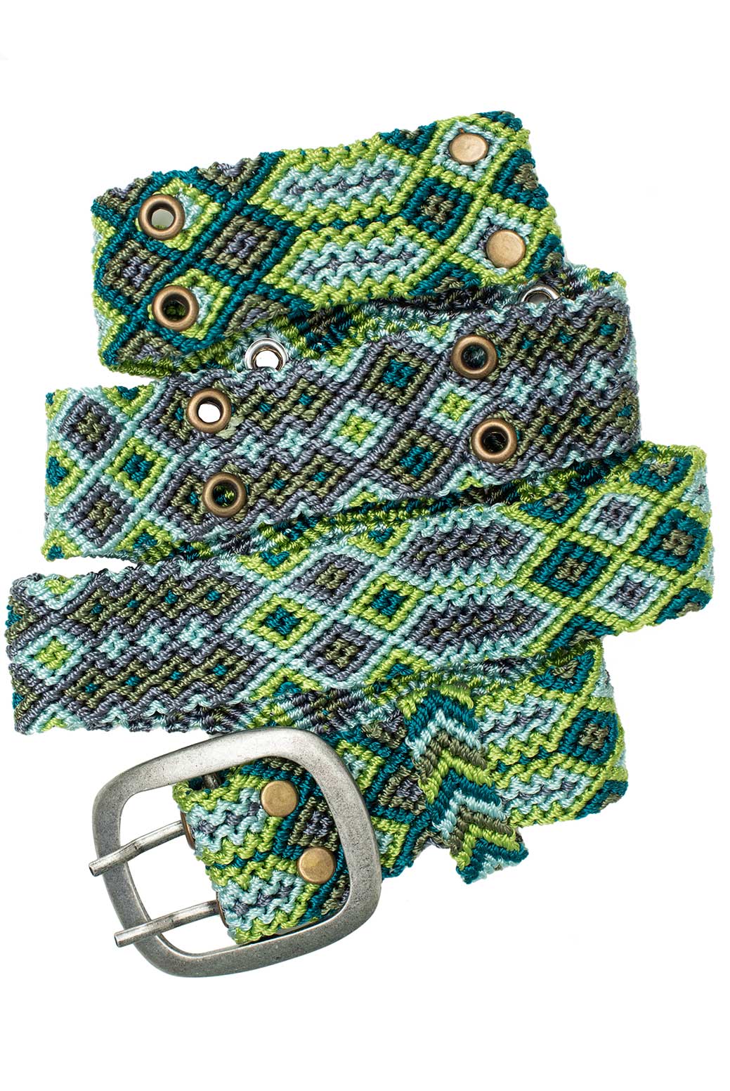 Die geknoteten Gürtel kommen aus Peru und werden in der traditionellen Knotentechnik von Hand produziert. Einzelne Farbfäden, bis zu 12 m lang, werden akribisch zu wunderschönen geometrischen Mustern geknotet. Wir arbeiten mit Frauengruppen aus den indigenen Völkern in den Anden zusammen, die einen verlässlichen und fairen Lohn erhalten, mit dem sie einen Beitrag zum Familienunterhalt leisten können.