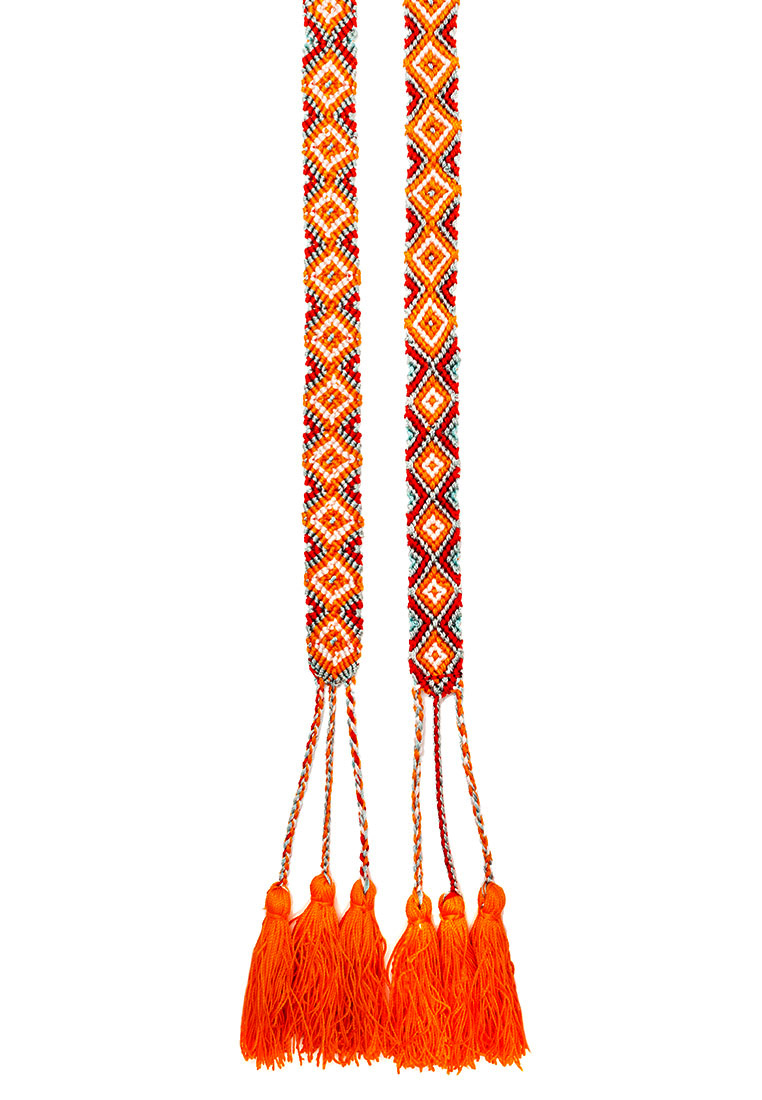 Die geknoteten Gürtel kommen aus Peru und werden in der traditionellen Knotentechnik von Hand produziert. Einzelne Farbfäden, bis zu 12 m lang, werden akribisch zu wunderschönen geometrischen Mustern geknotet. Wir arbeiten mit Frauengruppen aus den indigenen Völkern in den Anden zusammen, die einen verlässlichen und fairen Lohn erhalten, mit dem sie einen Beitrag zum Familienunterhalt leisten können.